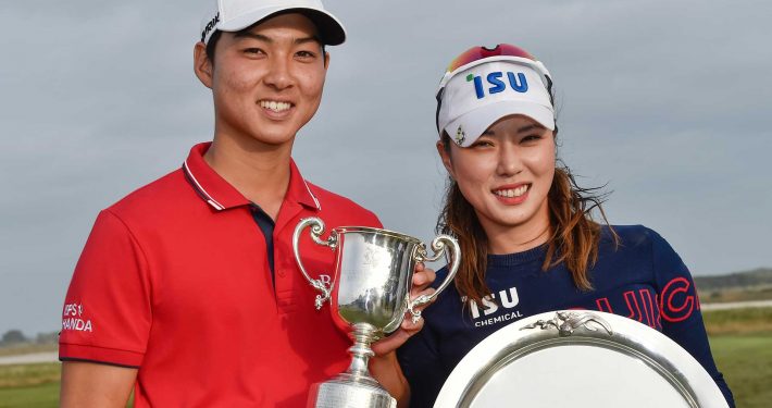 Champions Lee and Park pose with their trophies – photo Golf…
