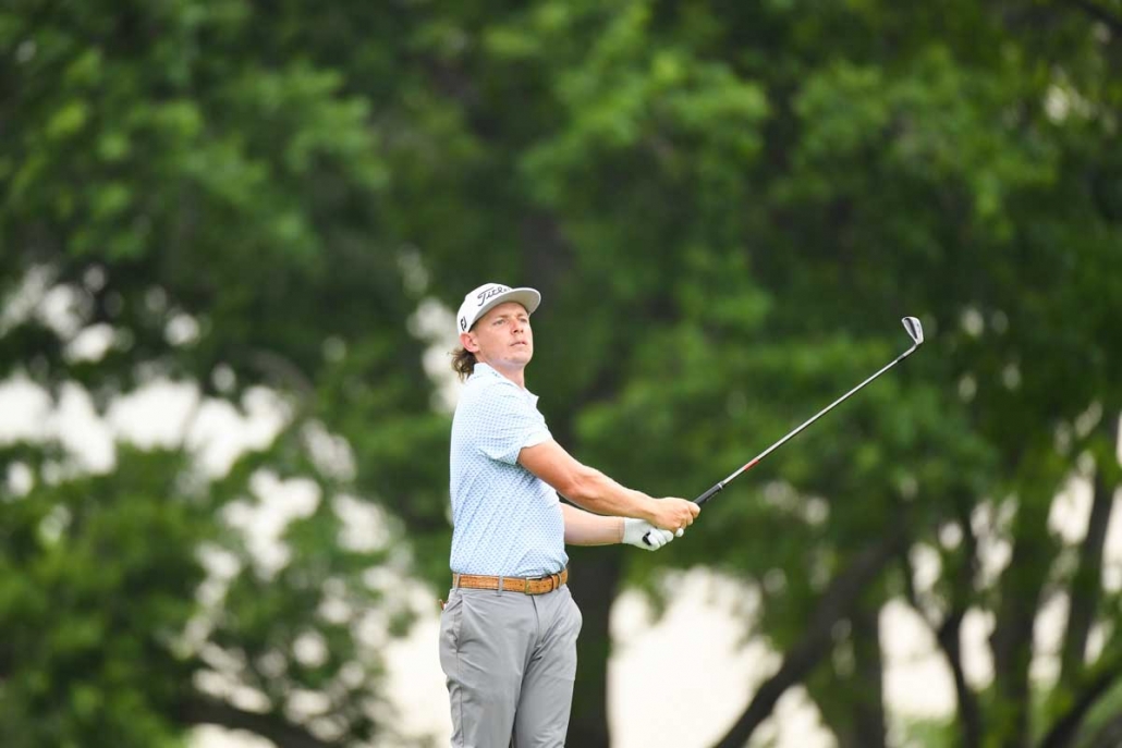 Cameron Smith watches his tee shot at the 7th today -PGA of America Montana Pritchard