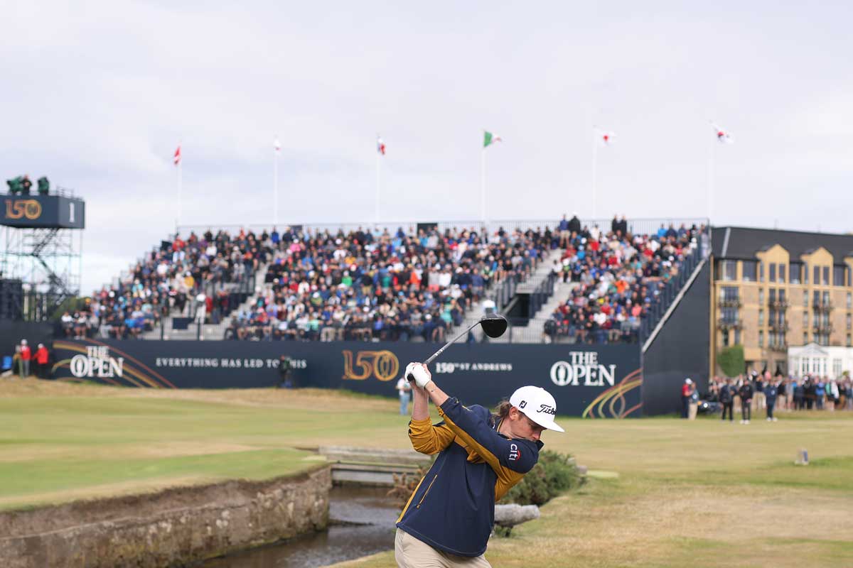 Cameron Smith – hits his tee shot at the 2nd today – photo R&A via Getty
