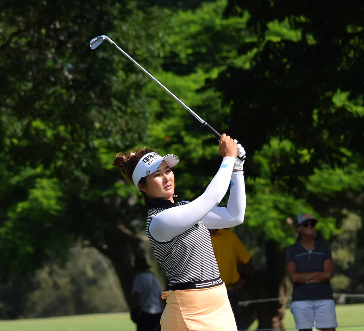 So Oh hits her tee shot at the 11th today – photo Bruce Young