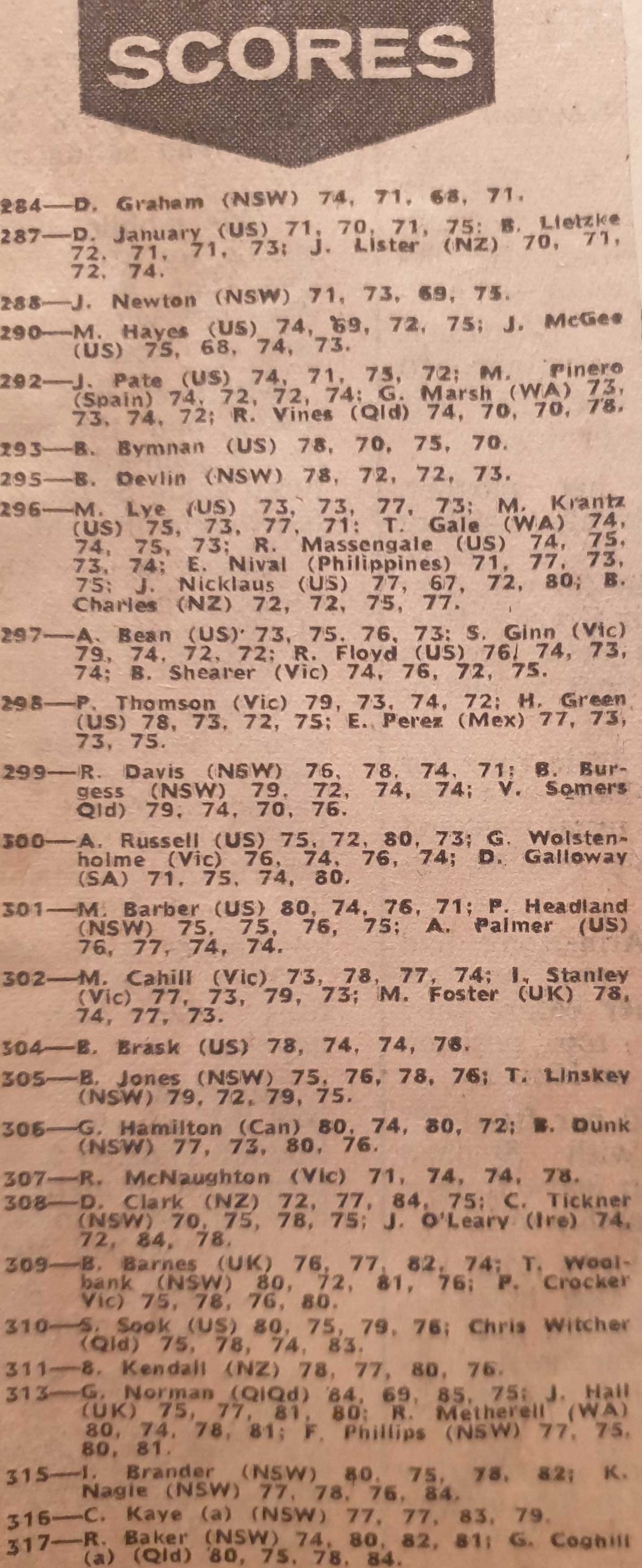 If these names seem a little unfamiliar to you, then a look at the first page of the leader-board which included the likes of Jack Nicklaus, Dave Stockton and Tom Weiskopf might help in assessing the quality of play needed to be in the position in which the leaders found themselves.