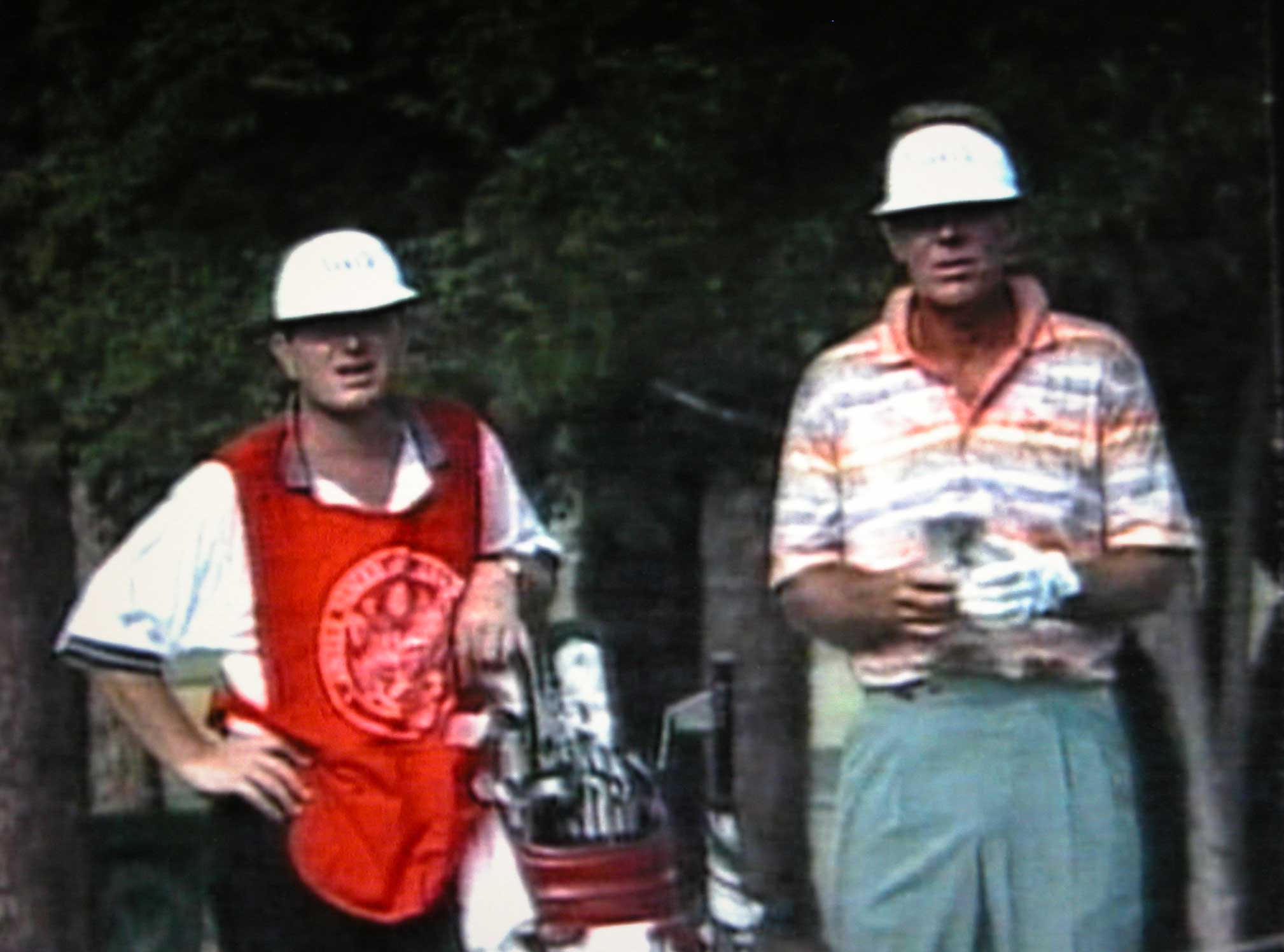 Grainy footage from the TV coverage shows Graham Marsh and I on the 72nd hole.
