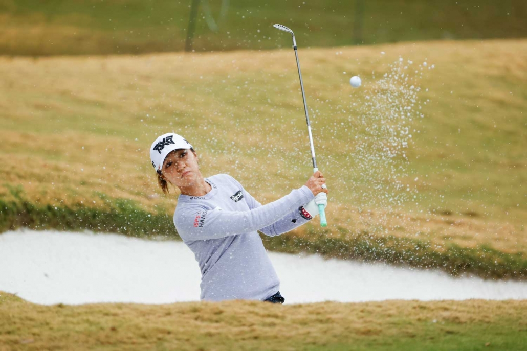Ko escapes from a bunker today – photo Chris Keane USGA