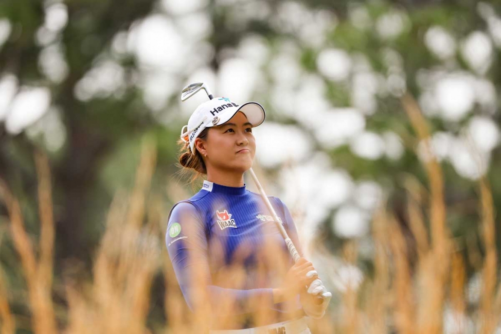 Minjee Lee has a share of the lead at the US Women’s Open at Pine Needles Lodge and Golf Club In Southern Pines, the West Australian catching the first round leader Mina Harigae to jointly hold a two shot lead over former Australian Women’s Amateur champion, Hyejin Choi, and Anna Nordqvist at the halfway mark of richest and most significant event in women’s golf.
