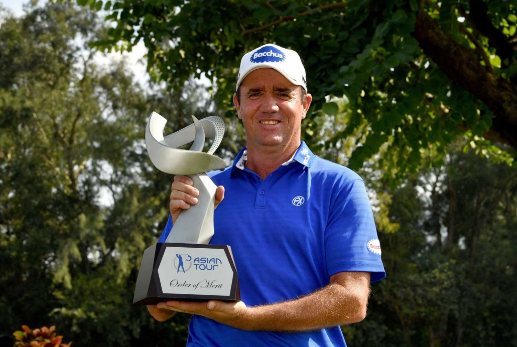 Scott Hend with his 2016 Asian Tour Order of Merit trophy – file photo Asian Tour